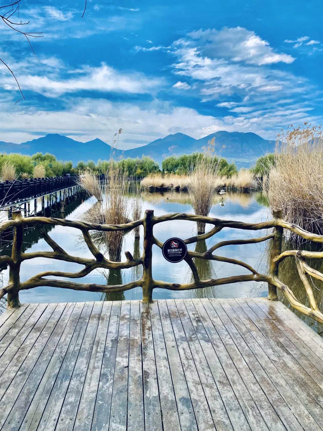 走進(jìn)拉市海濕地公園,“綠色+”景觀相互融合,完善的水生態(tài)系統(tǒng),為水生動(dòng)植物、周邊鳥類提供了良好的棲息場所,形成“魚游淺底,鳥飛長空”的美景。徜徉在濕地公園,嗅著芬芳,聆聽鳥鳴,心曠神怡,神清氣爽。