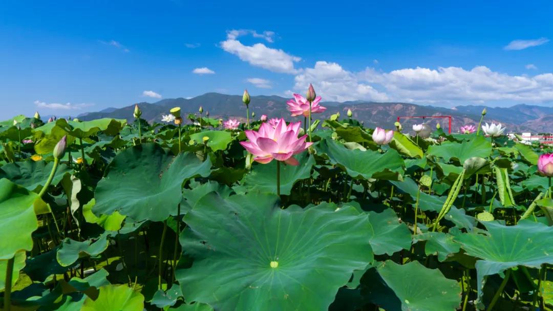三川西湖一帶的荷塘,種植的多為藕蓮,主要以采收蓮藕為主。藕蓮葉子寬大,蓮藕產(chǎn)量高,花色清雅。碧綠的荷葉鋪滿大地,青翠欲滴,無邊無際的很是壯觀。