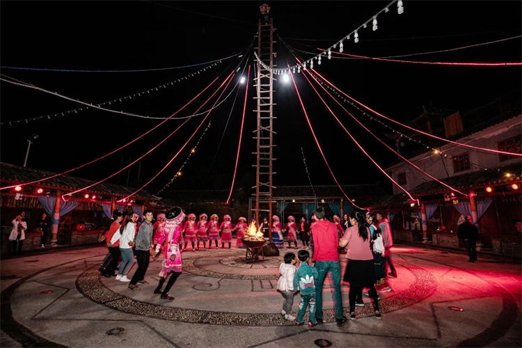麗江老君山黎明千龜山景區(qū)中諾瑪?shù)讔{谷熱情好客的傈僳人民們舉辦的上刀山下火海篝火晚會