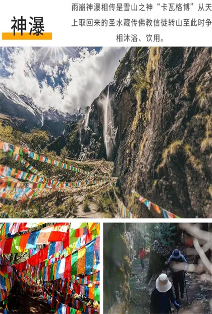 早餐后啟程前往神瀑,位于梅里雪山卡瓦格博南側有懸?guī)r頃瀉而下的瀑布,被稱為“雨崩神瀑”