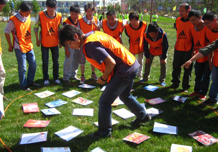 在固定的區(qū)域內(nèi)有30張卡片,每張卡片分別代表一個(gè)數(shù)字,30張卡片分別代表1至30,卡片的形式由數(shù)字或圖像組成。團(tuán)隊(duì)需要完成的挑戰(zhàn)是:團(tuán)隊(duì)成員需派一名代表到區(qū)域內(nèi)收集卡片,收集必須按照1至30的順序,團(tuán)隊(duì)其他成員只能在卡片固定區(qū)域的邊緣對(duì)收集卡片的人進(jìn)行語言上的協(xié)助,身體的任何一部分不可以和區(qū)域內(nèi)的人或卡片接觸,如違反規(guī)則,則在相應(yīng)的項(xiàng)目中會(huì)進(jìn)行有效懲罰,活動(dòng)總共挑戰(zhàn)4到5輪,每一輪最長(zhǎng)挑戰(zhàn)時(shí)間不得超過60秒,每一輪挑戰(zhàn)結(jié)束后成員需迅速離場(chǎng)。根據(jù)活動(dòng)現(xiàn)場(chǎng)人數(shù)分為兩組或者更多組進(jìn)行競(jìng)爭(zhēng)挑戰(zhàn)。